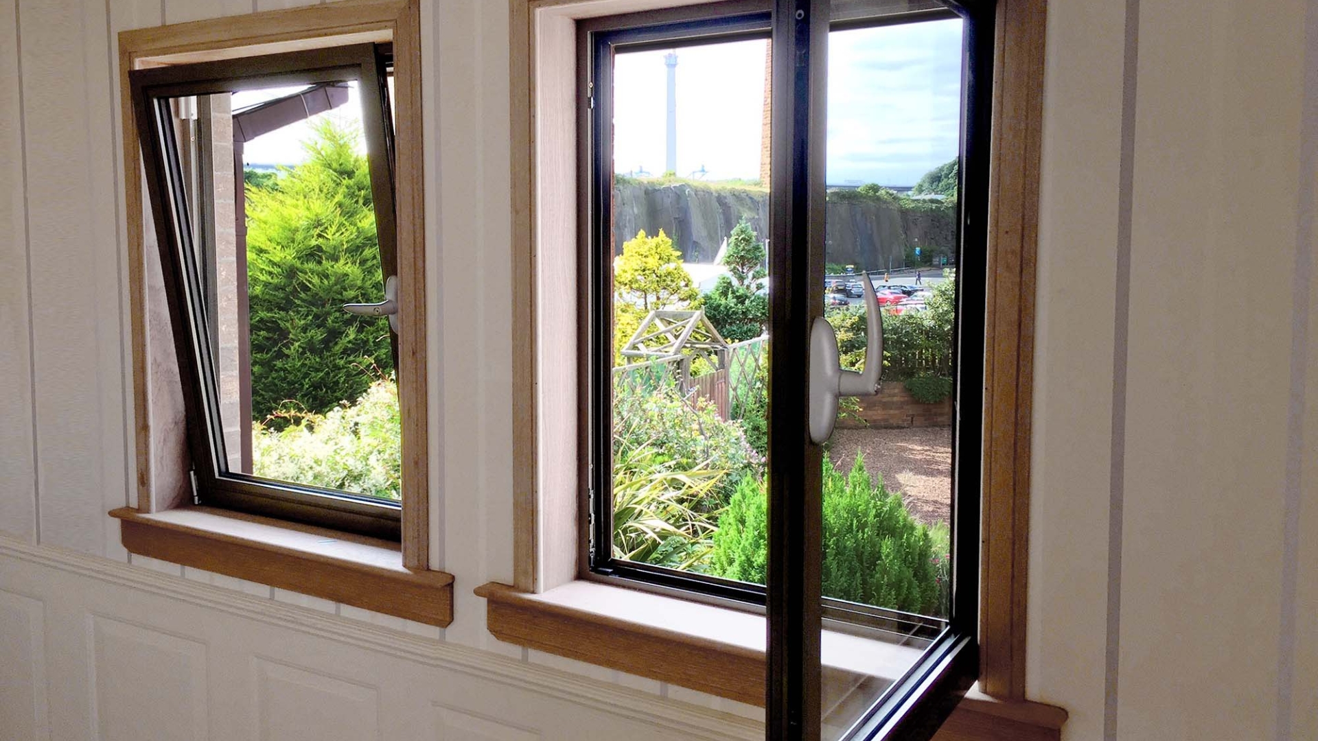 Las ventanas abatibles, también conocidas como ventanas de batiente, se abren hacia el interior o exterior como una puerta. Son muy adecuadas para ofrecer una excelente ventilación y aprovechamiento del espacio.